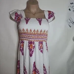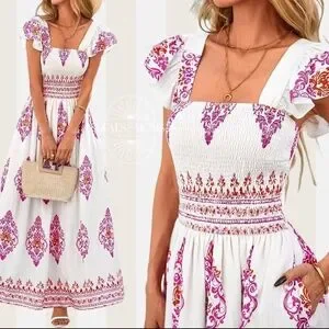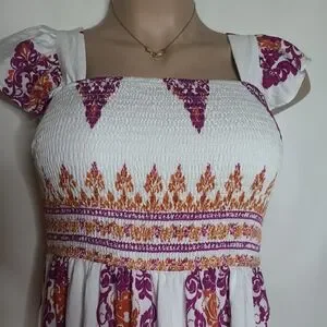 Embrace elegance with this chic white and purple maxi dress. Perfect for any occasion, it combines style and comfort effortlessly.This Besting Is New Without Label