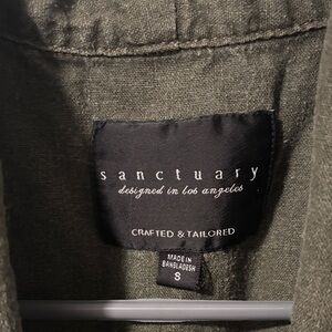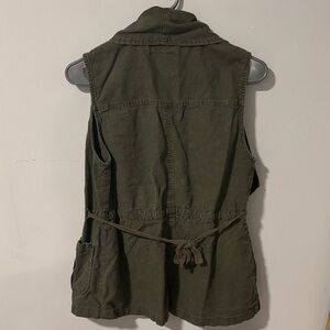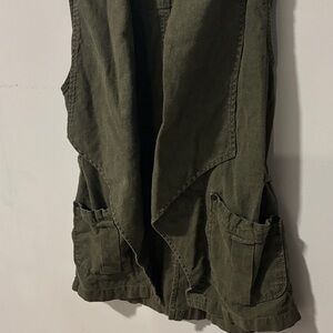 Anthropologie Sanctuary Linen Olive Green Open Front Utility Military Vest