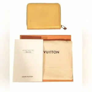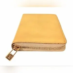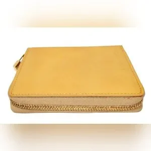 A functional, compact zip-around style featuring gold-tone brass hardware. The interior includes 2 card slots, a billfold compartment, and a snapped coin pocket, lined with smooth leather. The date code is BJ0070 which indicates that this wallet was made in France during the year 2000! There is some very light fading inside the billfold compartment. On the back of the wallet there is some color transfer, shown in the pictures, otherwise this vintage wallet is in excellent used condition! Very clean with minimal signs of wear. This wallet will be coming with a COA, the original box and dust bag along with the care card.