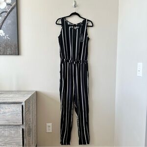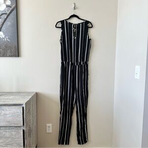 Lightweight jumpsuit with allover stripe design.