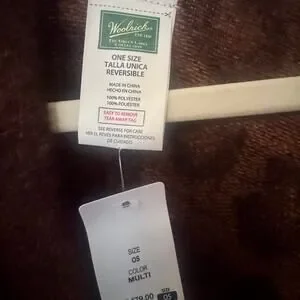 Elegant reversible poncho by Woolrich. Rich brown hue. Ideal for versatile styling.