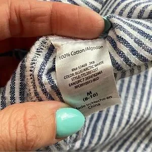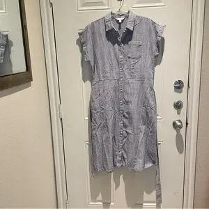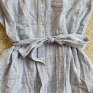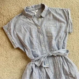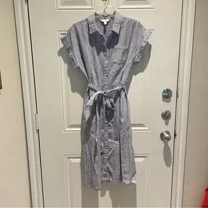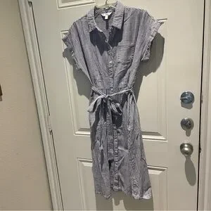 Time and Tru Blue White Striped Midi Shirt Dress Size Medium Tie Waist A-Line