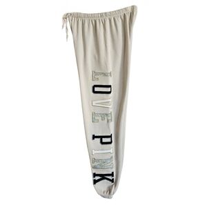 PINK Victoria's Secret Bling Beige " Love Pink" Classic Joggers Size S