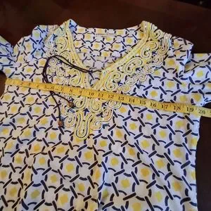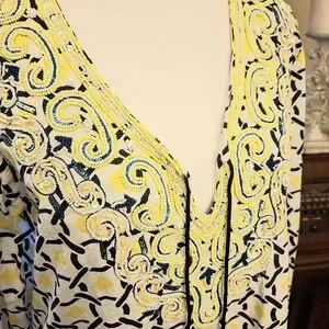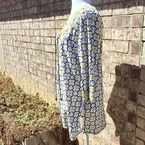 Barbara Gerwit Embellished Geometric Print Cover-Up Tunic Top Women Size Large