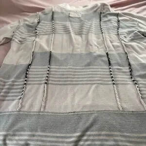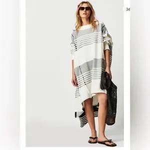 So cool in a striped style, this oversized, slouchy top is featured in a maxi-length silhouette with lower back hem, exposed seaming, and lower back hem for added shape.