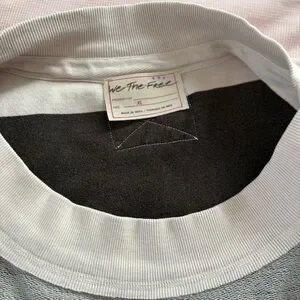 Black and off white, with pink hue. Sweatshirt dress. Perfect for lounging. Has pockets