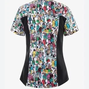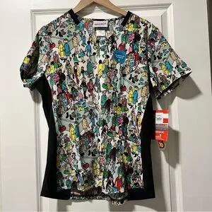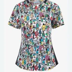 NWT Cherokee Women’s Tooniforms Where’s Waldo? V-Neck Scrub Top Size Large