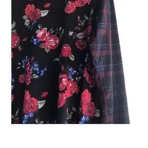 Theo is a super cute top beautiful designed with red roses and plaid long sleeves. Stretchy fabric and comfortable to wear and easy to wash. No ironing needed.