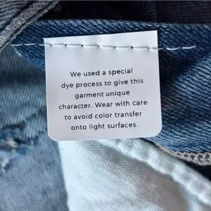 Features matte silver tone hardware with a raw hem.