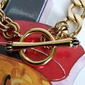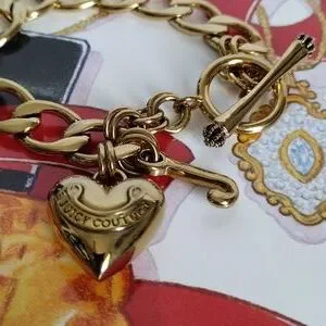 Such a fun blast from the past! You will love this vintage puffy heart bracelet from Juicy Couture! The color of the gold-tone metal is rich and the bracelet is a nice heavyweight. There is a J charm next to the heart and a long toggle clasp so it's easy to put on and remove. In great vintage condition with some rubs to the color on the back of the heart and on some links, please review pics.