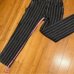 • Allover washed black with white vertical stripe detail