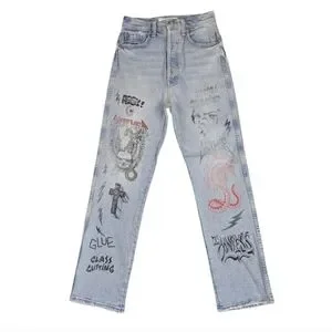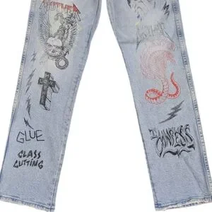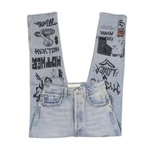 • Light wash with punk-inspired artwork graphics throughout