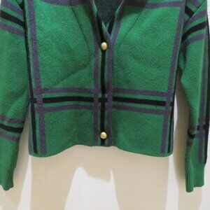 TULAROSA Bellair Cardigan Green Plaid XS Preppy Cropped Old Money