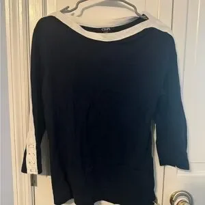 Navy White 3/4 Sleeve top with accents. So cute and perfect to dress up or down!