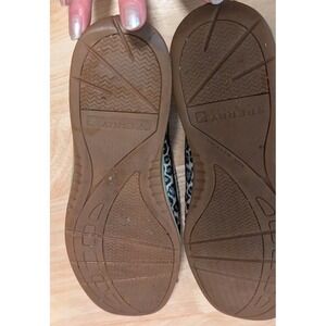 The Sperry Top-Sider 9.5M Firefish Boat Shoes in Leopard Sparkle Metallic Black are stylish and versatile flats perfect for casual occasions. With a round toe and slip-on closure, these boat shoes feature a multicolor animal print design with glitter accents and a logo detail. Made from leather with a leather lining and insole, these lightweight and cushioned shoes offer comfort and breathability for all-day wear. Whether you're going for a hipster, nautical, or Aztec-inspired look, these Sperry boat shoes are a trendy choice perfect for any season.