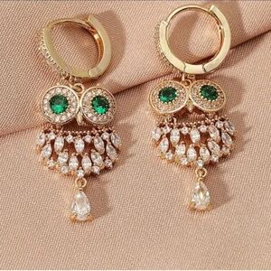 These stunning owl earrings feature a luxurious gold finish with vibrant green accents made with Swarovski Crystals. Perfect for adding a touch of elegance to any outfit.