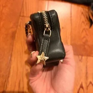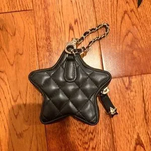 Star-shaped quilted lambskin pouch with embossed CC logo. Gold-tone chain with leather woven detail. Zipper closure for secure storage. Super cute! Never worn, bought it in my last Japan trip.