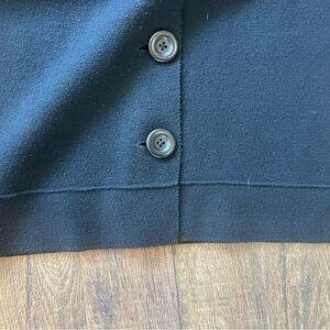 CAbi Jackie O wool blend cropped cardigan sweater. Elegant black sweater. Features textured collar and cuffs. Button-front design. Perfect for layering. First picture stock and remaining are shipping product.
