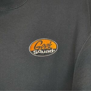 Rare Geek Squad black crewneck sweatshirt with Geek Squad logo on the chest and emblem on the arm. Pre-worn will some pilling and a separated seem on one of the cuffs but otherwise clean and in good condition. Size medium measuring approximately 20.5" ptp and 26.5" total length