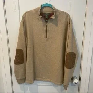 Woolrich QuarterZip Pullover Sweater Elbow Patch Tan Brown Mens Size XL