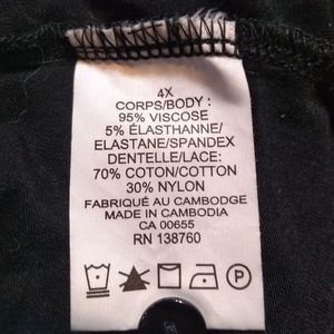 Penningtons Size 4X Black Lace Swing Tank Shirt, Sleeveless, Lined