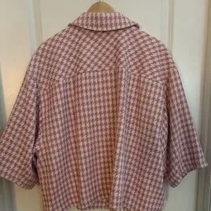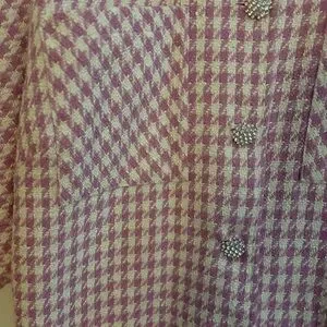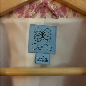 CeCe Pink & Cream Houndstooth Jacket with Crystal Buttons 2X