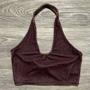 Don’t Ask Why Crushed Velvet Halter Top Crop One Size Purple Made in Italy Y2K