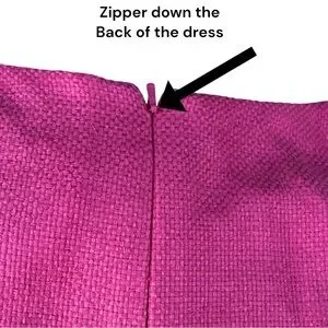 Features include a concealed back zipper, fully lined interior, and a back slit for comfortable movement.