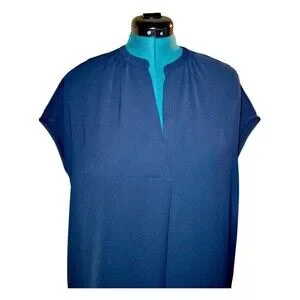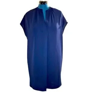 This Vince Popover dress is a must-have for any wardrobe. The dress features a solid blue color, short cap sleeves, and a V-neckline. It is made from a chambray fabric type, with a knee-length dress length and a pullover closure. The dress is perfect for travel, casual outings, workwear, or business attire. It comes in size medium a shift and shirt dress style.