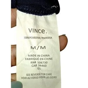 The dress also has pockets and features the Vince logo as an accent. It is suitable for summer, fall, and spring seasons. The dress is designed for women, with a classic designer theme