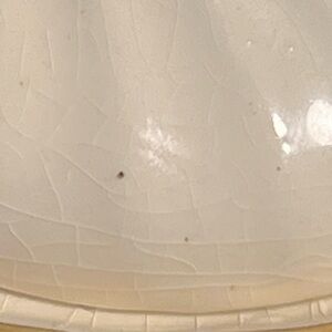 Good vintage condition with typical age wear. Crackle glazing is original to the design. One small chip on the rim and a couple specs in the glaze (shown in photos). Priced accordingly.