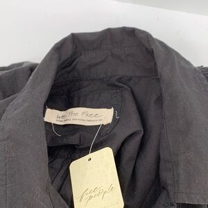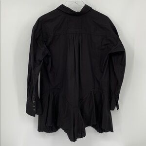 We The Free People Freya Poplin tunic blouse top shirt black button fray new XS