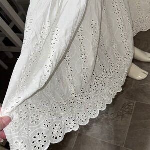 Suzy Shier White Smocked Bodice Eyelet Tier Maxi Dress boho/beach/flowing. XS