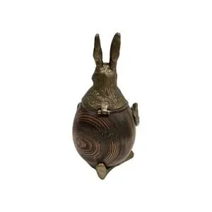 RABBIT TRINKET BOX VINTAGE ARTHUR COURT BRASS BRONZE WOOD DECOR Inkwell FIGURE