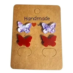 A bold, colorful butterfly duo perfect for customers who love sparkle and contrast. One pair features a dreamy purple‑marbled swirl, while the other brings a vibrant red pop. Lightweight, handmade, and easy to style, this set adds instant charm to any jewelry display.