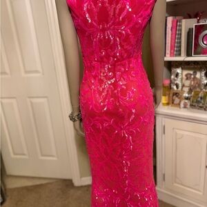 Stand out in this stunning pink evening gown, perfect for any special occasion. The intricate design adds a touch of elegance.