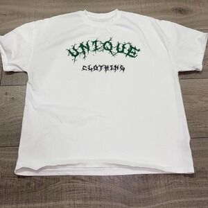 Unique Clothing Graphic Tee White Green Print – Size L
