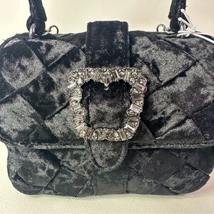 NEW SAM BRIT CRUSHED VELVET TOP HANDLE SHOULDER BAG BLACK NWT!!