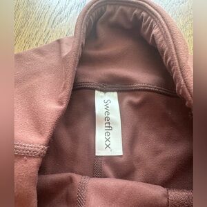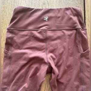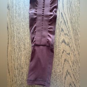 Comfortable high-rise brown leggings with a flattering fit. Smooth, stretchy fabric for all-day movement. Designed with a supportive waistband and sleek silhouette. Brown color adds warm, versatile style. No size tag. Fits small