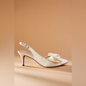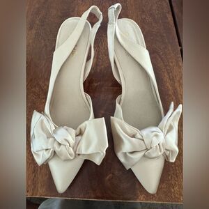 BHLDN Seychelles Neve Satin Bow Heels Ivory US 7 Bridal Wedding Shoes NWOB