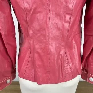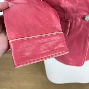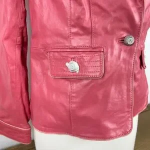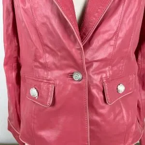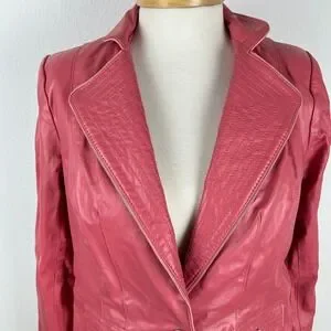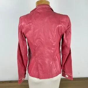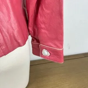 Keywords:Bradley Bayou leather jacket, pink blazer, women's XS coat, Mean Girls Regina George costume, Elle Woods Legally Blonde cosplay, Halloween pink jacket, Y2K blazer, retro leather coat, stage costume wardrobe, Plastics costume jacket