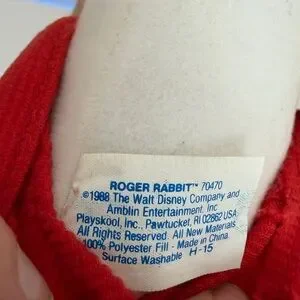 This item is a vintage 1988 plush doll of Roger Rabbit from the movie Who Framed Roger Rabbit, produced by Playskool.