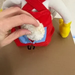 Features: Features iconic character details including red overalls, a blue spotted bow tie, and plush body.