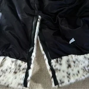 Recycled faux snow leopard sable fur with SANS Leather paneling & 100% recycled lining.