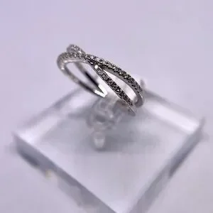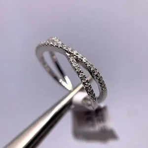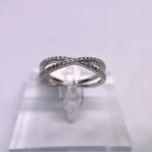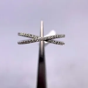 New Genuine Moissanite Criss Cross Wedding Band. Brilliant & Sparkly. Great size for everyday. Fits around most large engagement rings & rings with large prongs. Elegant Pave Setting.