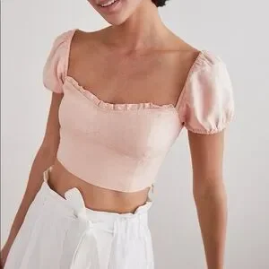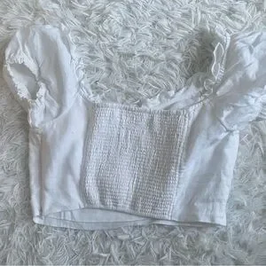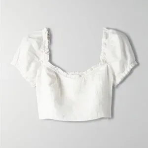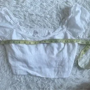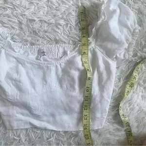 Look cute while reading tarot cards in an open field. This is a puff-sleeve blouse made out of 100% linen fabric that can be worn on or off the shoulder.