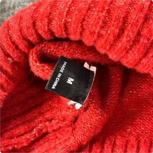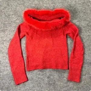 Red Knit Sweater Faux Fur Trim Collar Y2K Glam Winter Top Medium