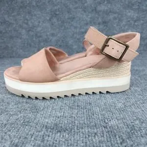 TOMS Sandals Womens Size 8 Pink Platform Espadrille Wedge Buckle Ankle Strap