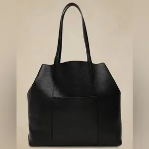 Beautiful Banana Republic large leather tote from the Holiday 2022 collection. Crafted from soft black pebbled leather with a clean minimalist design.