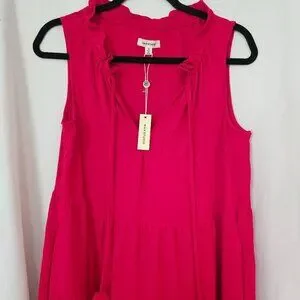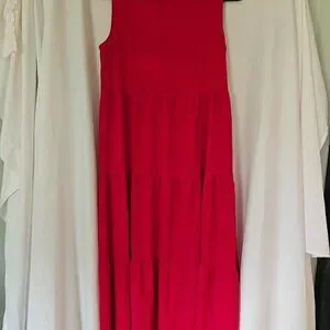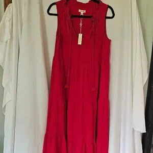 Max Studio Women's Red Dress Sleeveless Tiered Casual Summer Tassels Boho Small